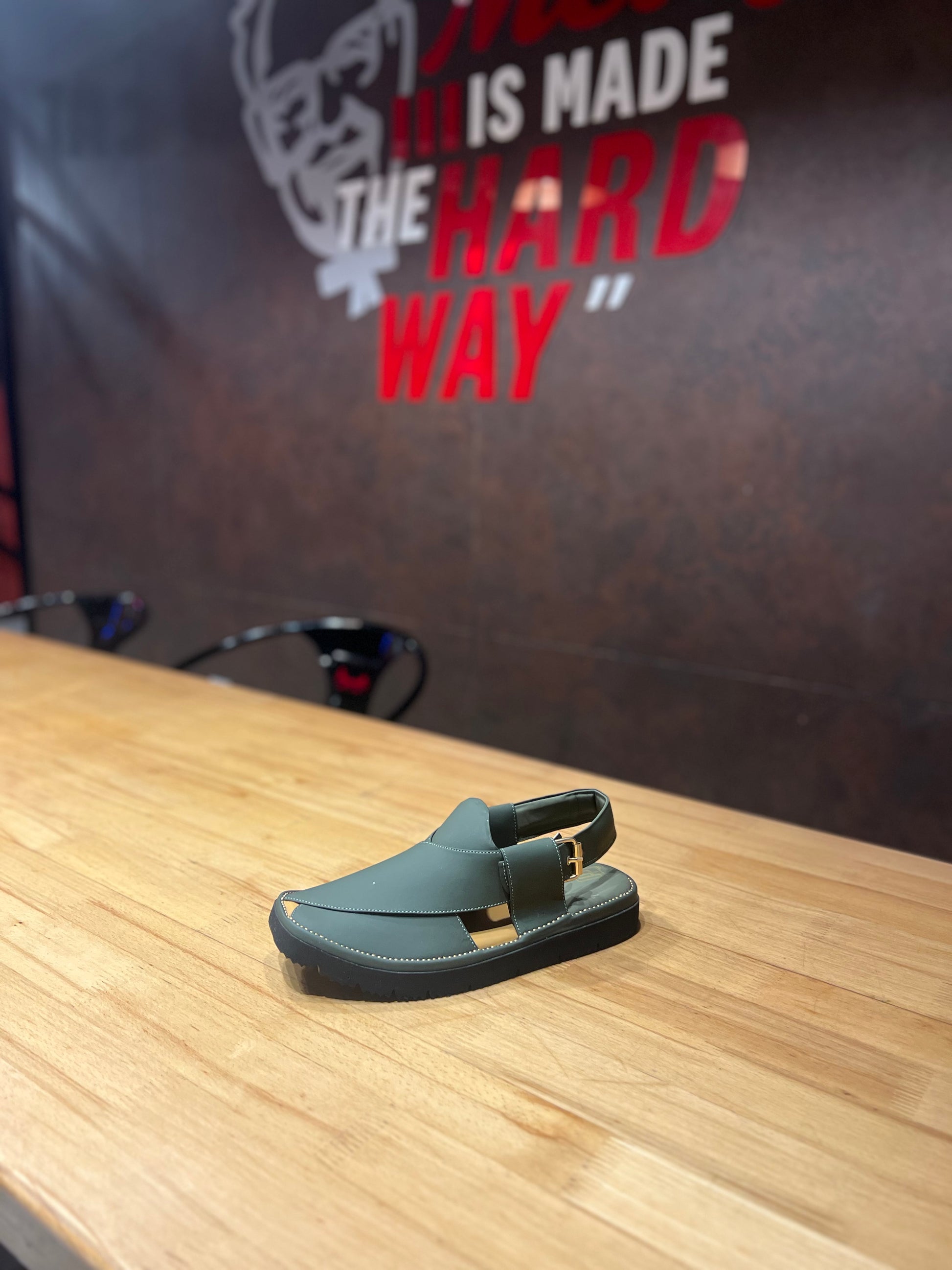 The unique muted green color adds a distinctive touch while maintaining the classic Peshawari style. Designed with a comfortable Skecher-style sole, it provides excellent support and a soft walking experience, making it ideal for everyday wear as well as special occasions.
